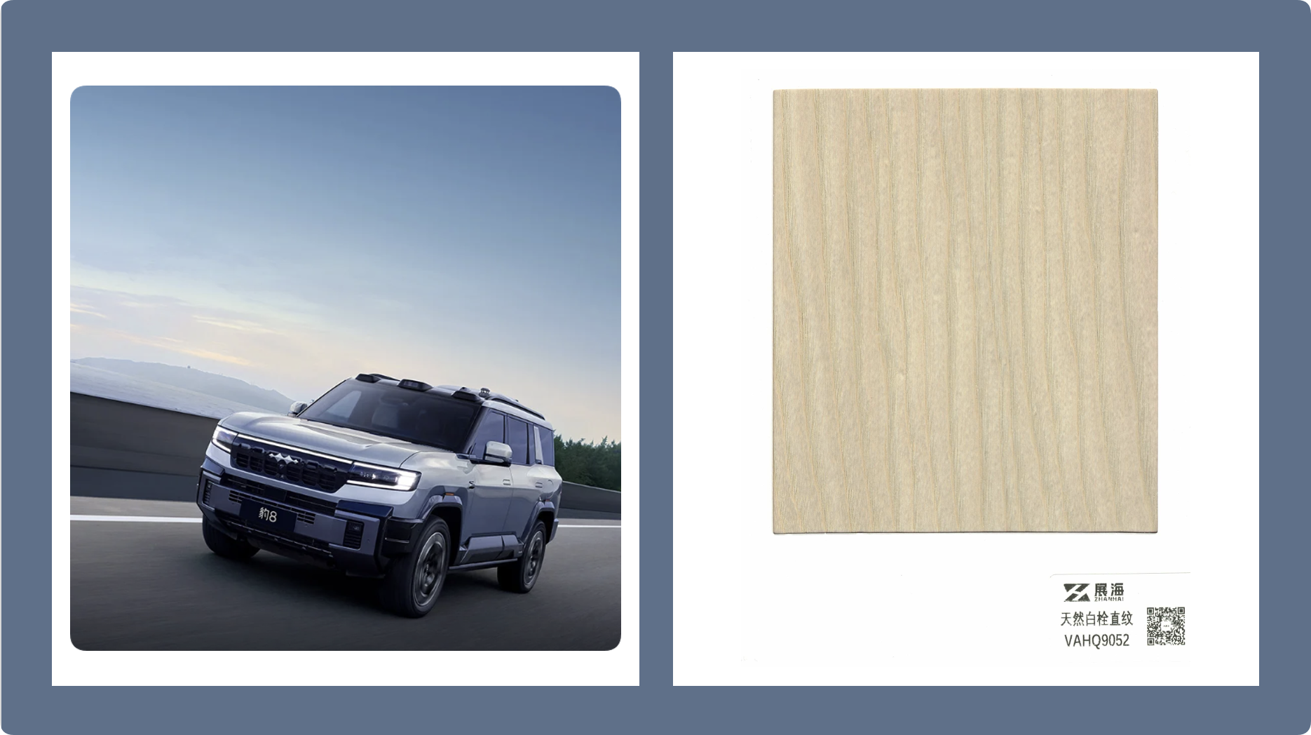 作为一款定位高端、强调个性与科技融合的车型,方程豹豹8在内饰设计上对材质的选择尤为考究。展海汽车科技依托其在天然木皮领域的深厚积累,精选白栓直纹天然木皮,经过精细切割、稳定化处理及环保涂装等多道工序,在完整保留木材原始纹理与温润触感的同时,满足汽车内饰对耐久性、耐候性及低VOC排放的严苛标准。